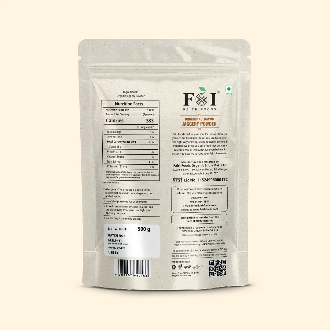Organic Kolhapur Jaggery Powder - 500 grams